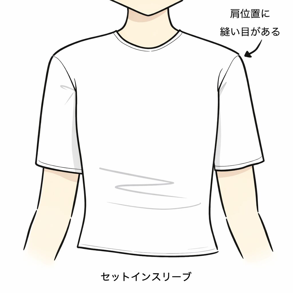 肩に縫い目があり、腕が別パーツとして付いているデザインです。ジャケットやきれいめブラウスに多い形です。