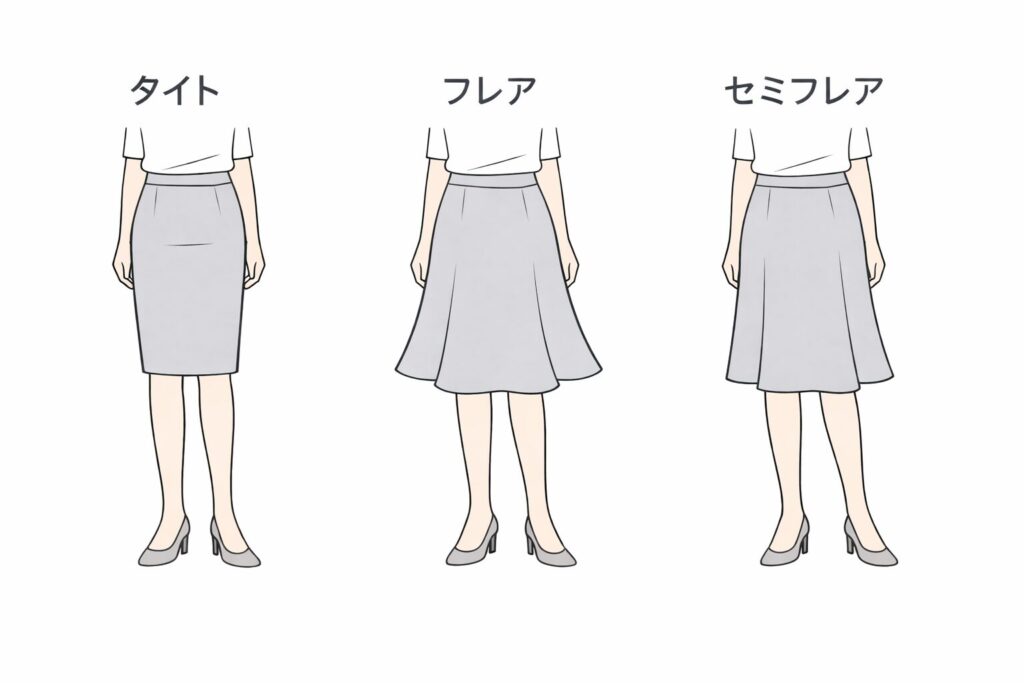 オフィスで使いやすいスカートは主に次の3タイプです。